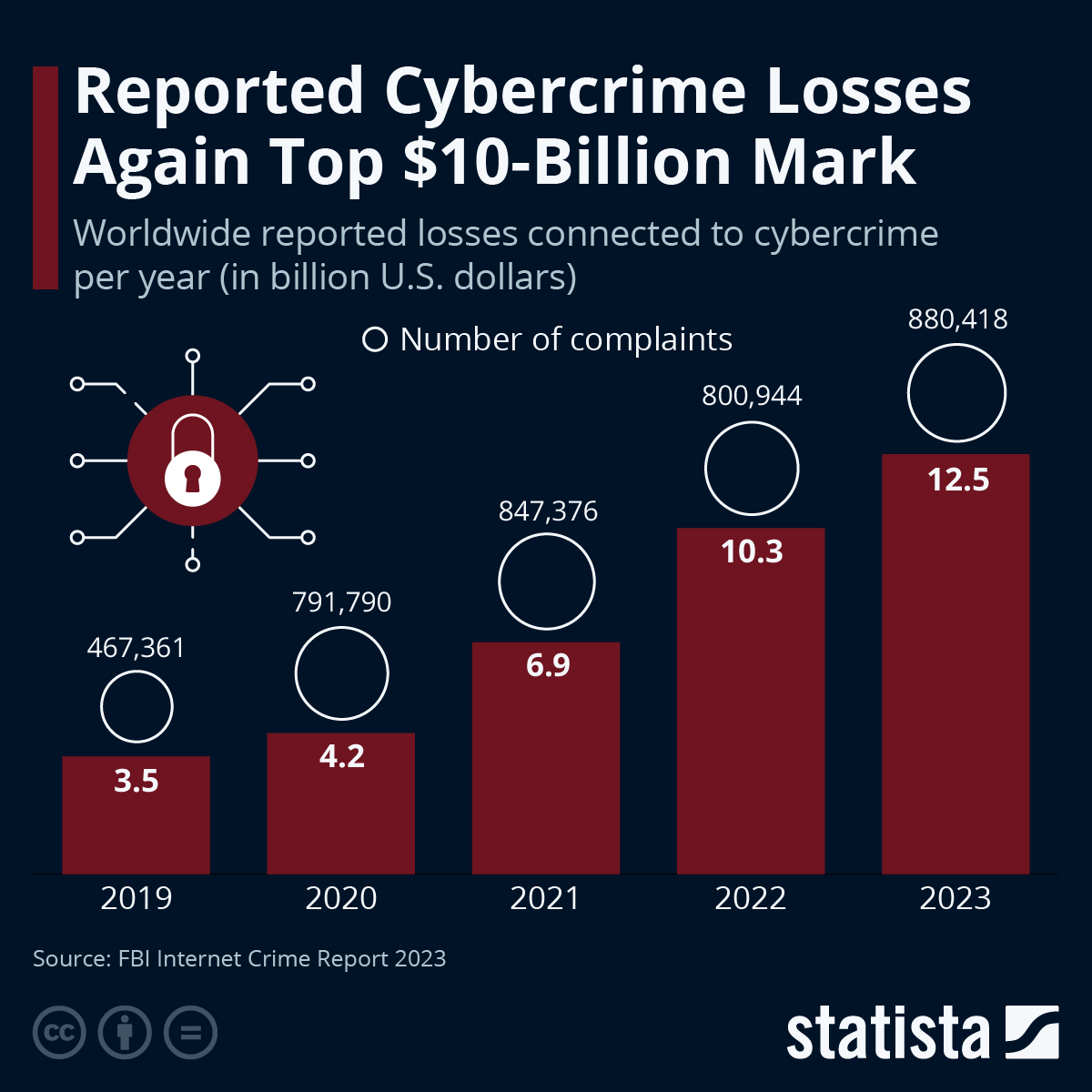 Rapid Growth: Cybercrime is one of the fastest-growing industries globally, with incidents and costs skyrocketing.